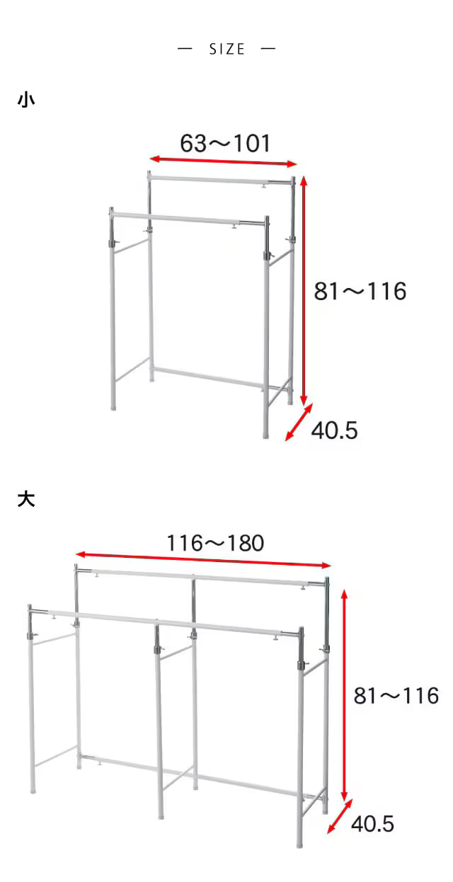 ■大/幅116〜180、奥行40.5、高さ81〜116cm