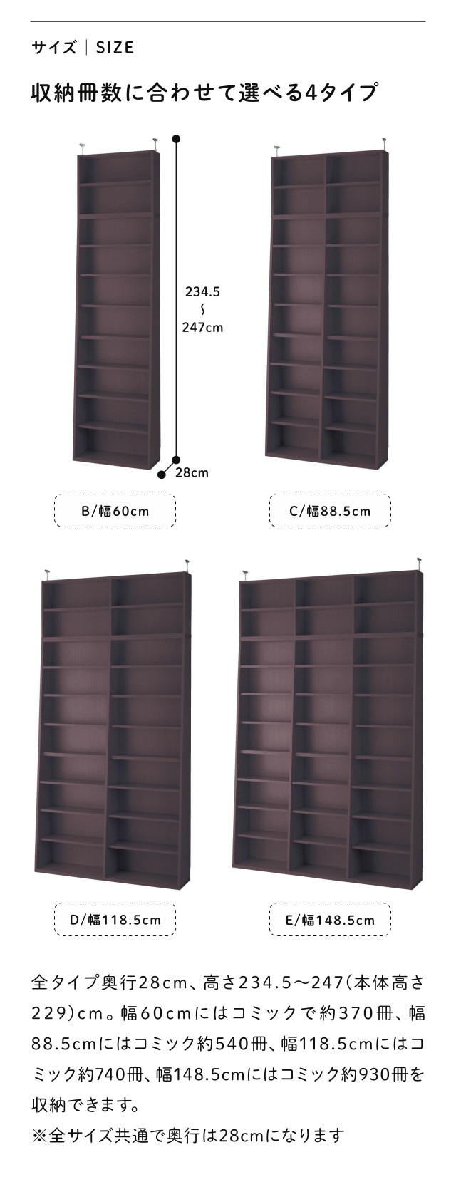 ●奥行28、高さ234.5〜247(本体高さ229)cm