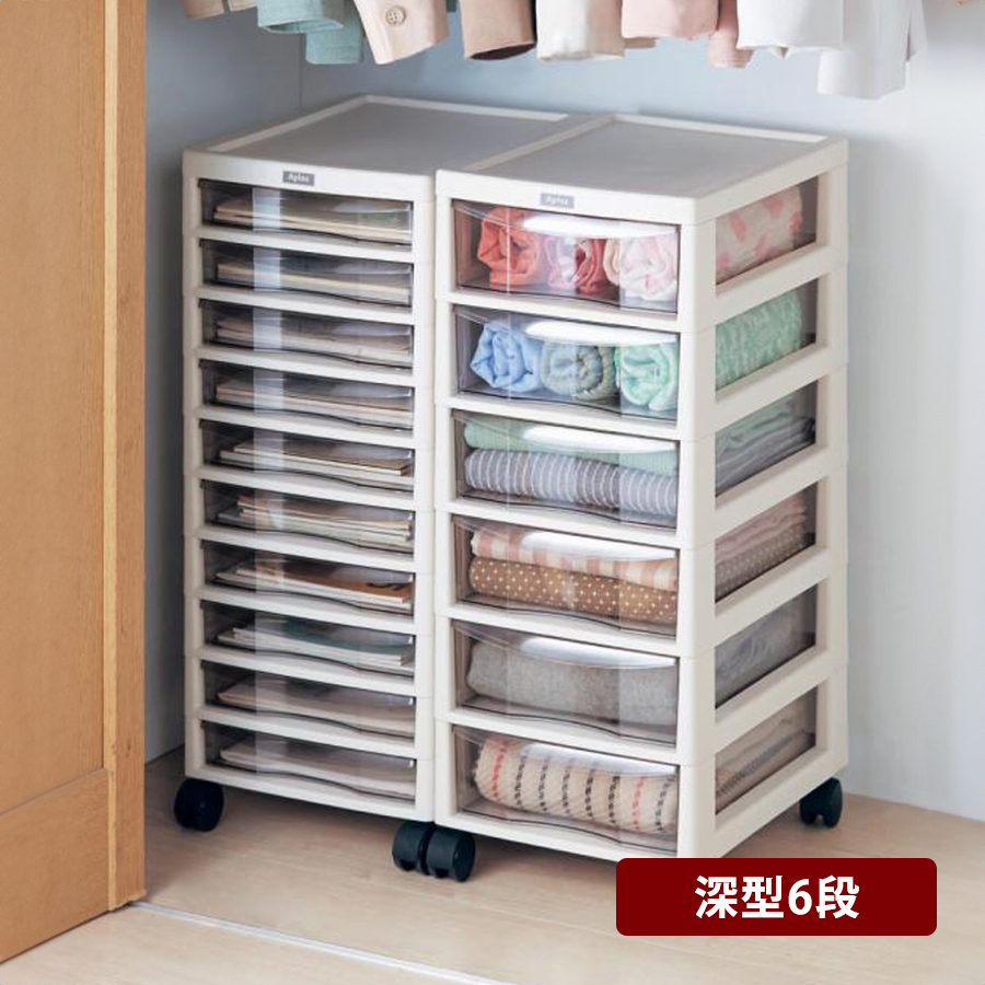 ●キャスター付きで手軽に移動でき、クローゼット内の整理収納にも役立つ多段チェスト