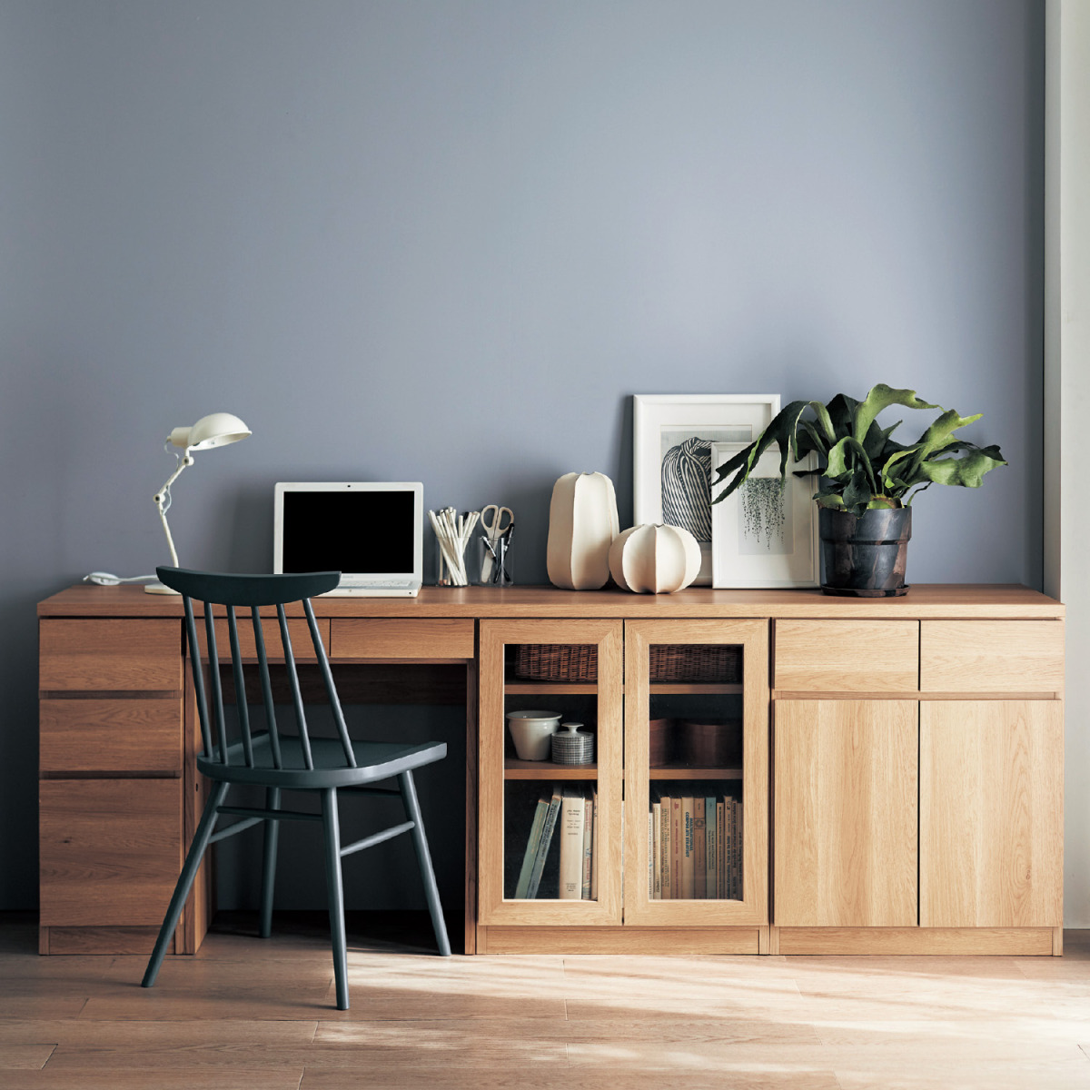 ●日本の住まいで主流の壁色、床色を考え、ホワイト・ナチュラル・ダークブラウンの3色を揃えたシリーズです