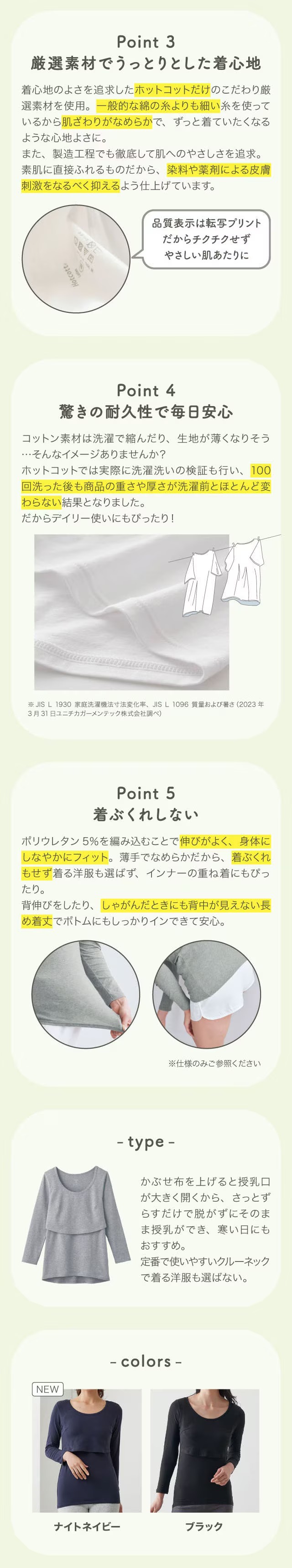 授乳がラク♪ママにも赤ちゃんにもやさしい綿95%発熱インナー