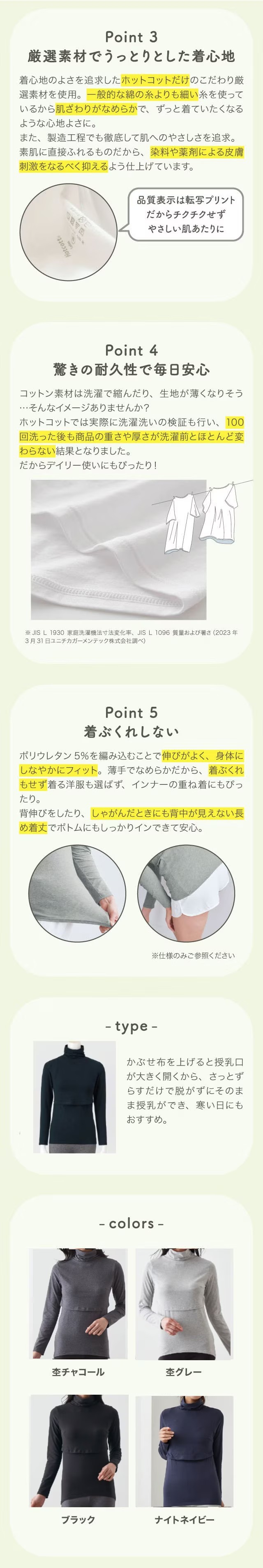 授乳がラク♪ママにも赤ちゃんにもやさしい綿95%発熱インナー