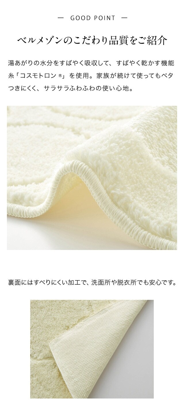 ●裏面にはすべりにくい加工で、洗面所や脱衣所でも安心です