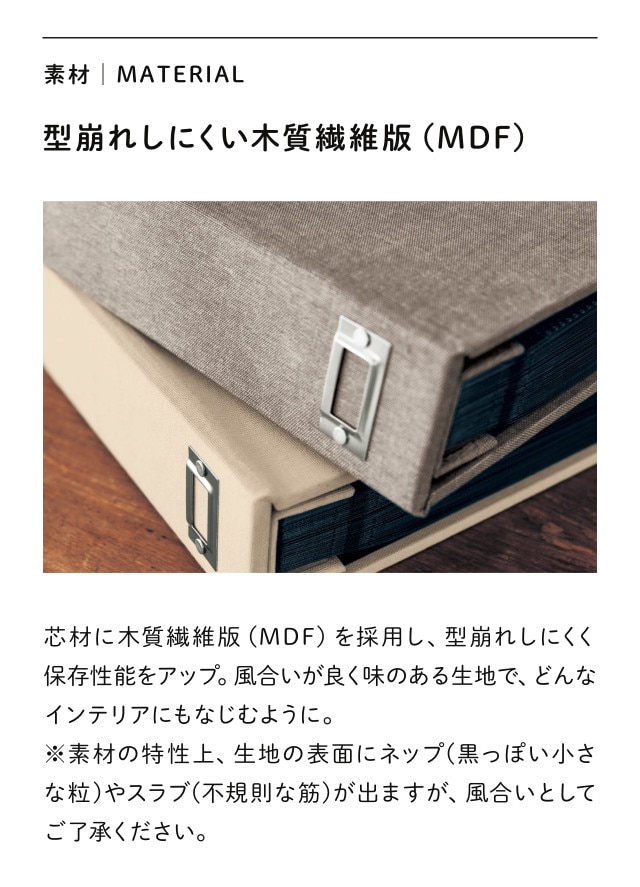 ●主材/表紙:綿、芯材:MDF繊維板、リフィル:ポリプロピレン