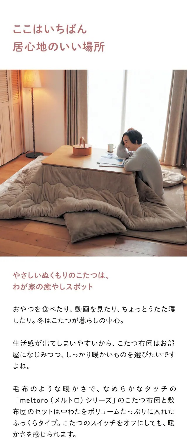 ●両面とも包み込まれる素材のこたつ布団とウレタン入りの敷布団をセットで