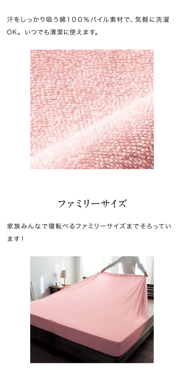 3人家族向けで小さなお子様1人を間に挟んで寝られるサイズです#マットレスカバー#マットレスシーツ#ベッドシーツ#タオル地