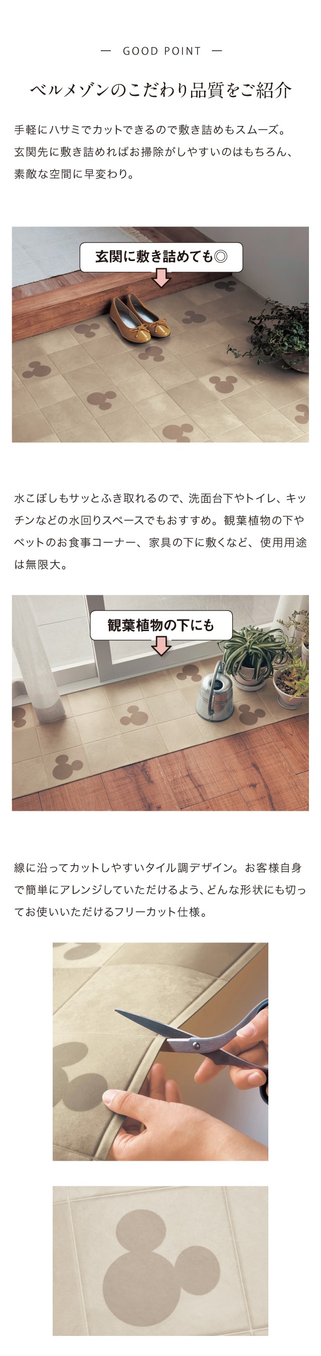 ●手軽にハサミでカットできるので玄関への敷き詰めもスムーズ