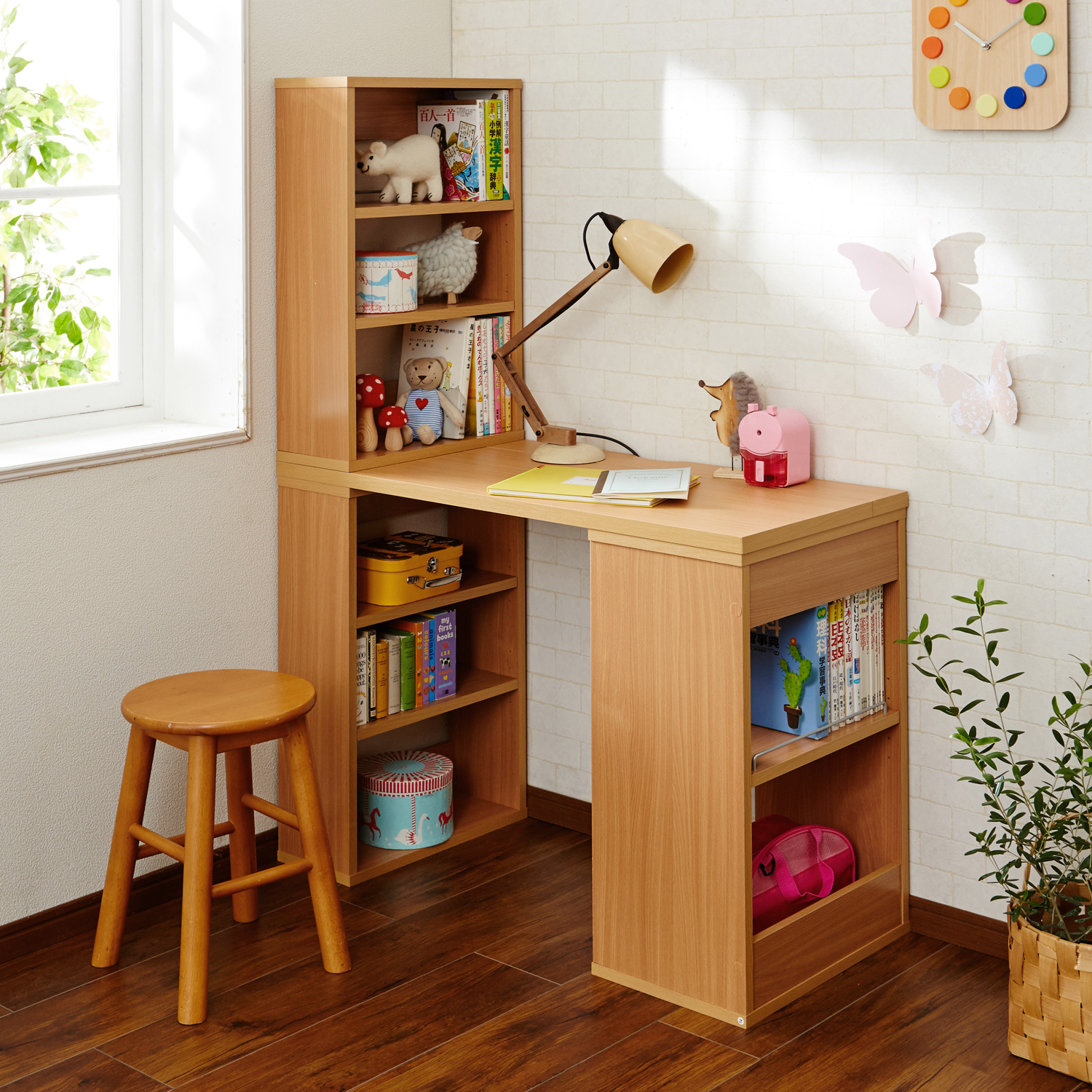 ●ラック形状になった脚部には、教科書や文庫本、お道具箱などをしっかり収納OK