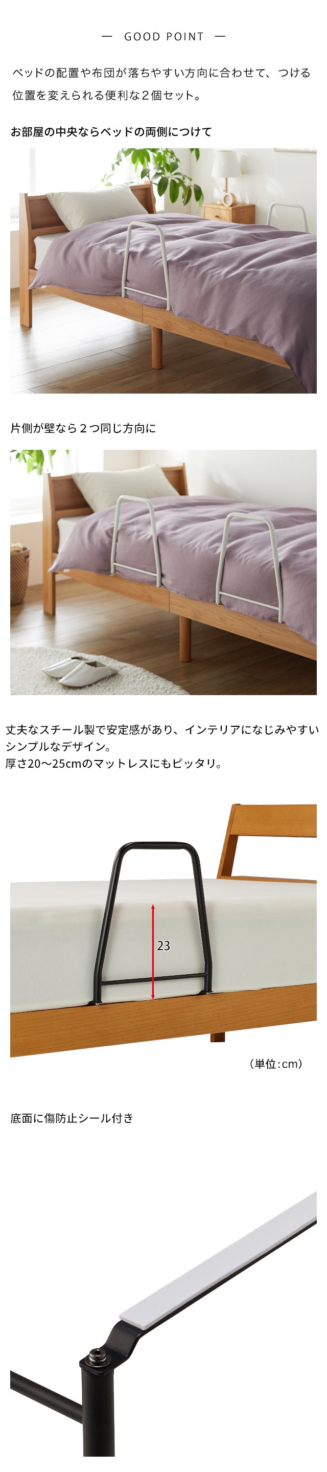 ●ベッドの配置や布団が落ちやすい方向に合わせて、つける位置を変えられる便利な2個セット