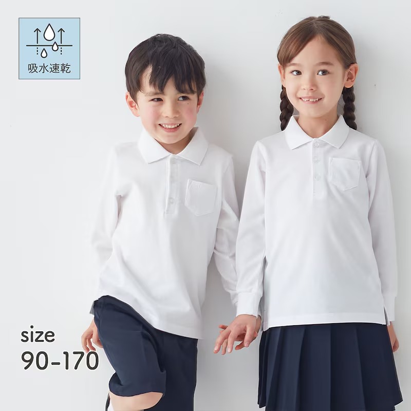 スクールポロシャツ ポロシャツ キッズ 長袖 男女兼用 男の子 女の子 子供 子ども服 ボタン 140 150 160 170 GITA 入学 通学 小学校 制服 吸水 速乾 安い