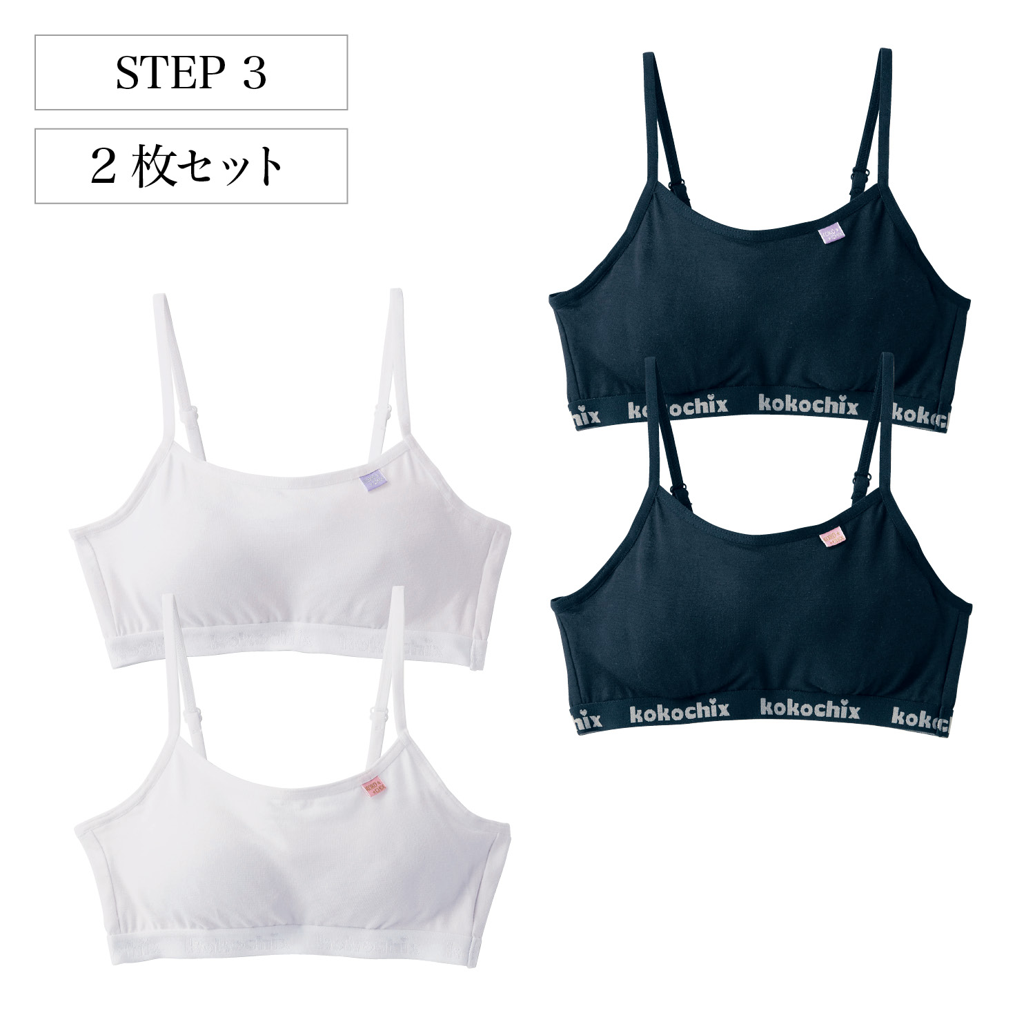 ふくらみはじめたデリケートなバストをカバーしてくれる、ハーフキャミトップブラジャー。