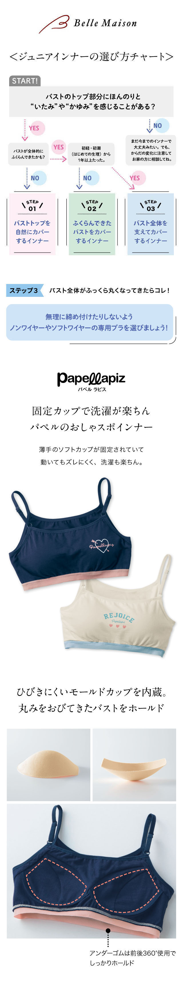 今のリアルなジュニア&ティーンの体形に合わせた独自のサイズを設定し、細部の着心地にもこだわりました。