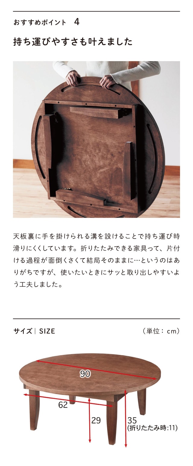 ●脚が折りたためるから、普段はしまっておいて必要なときだけ出せます