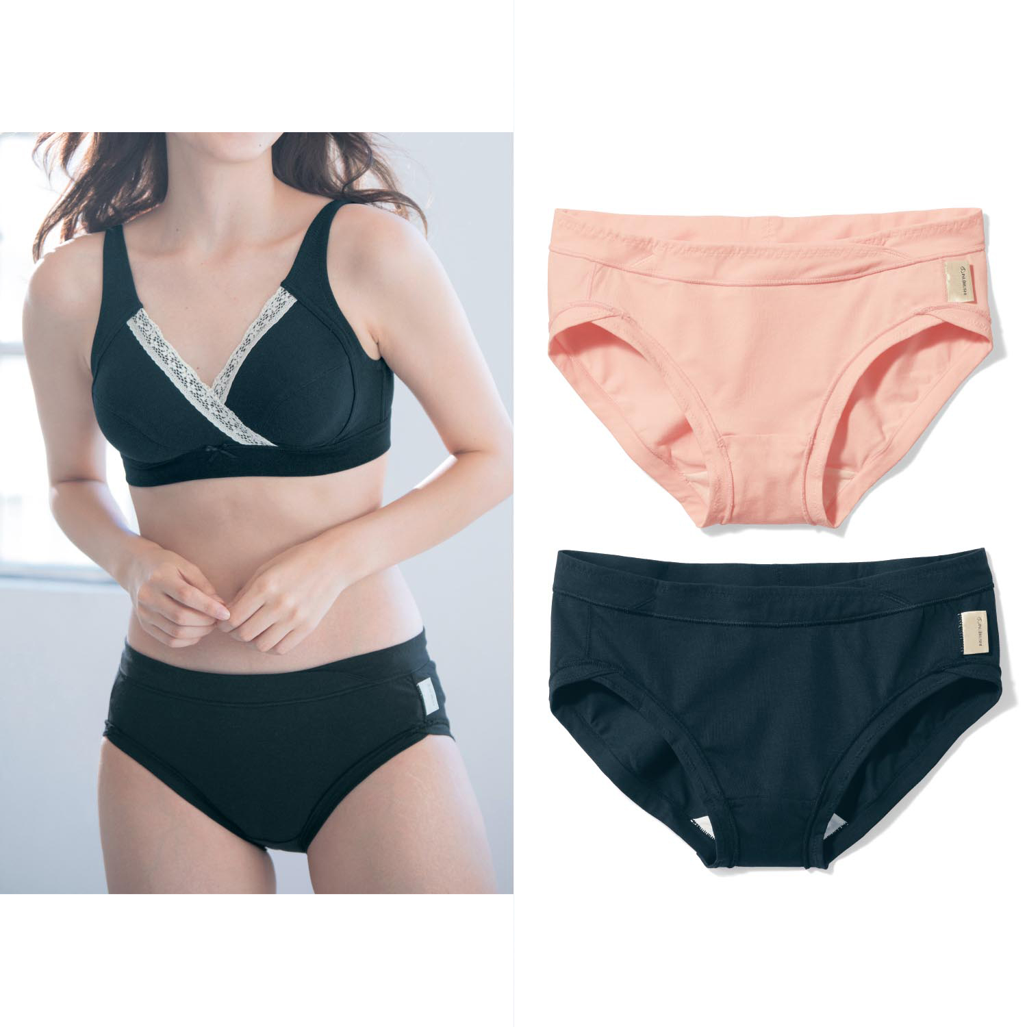臨月頃のおなかも圧迫しにくいよう前は浅め、後ろは深めで、お尻をすっぽり包んでずれにくいはきごこち。