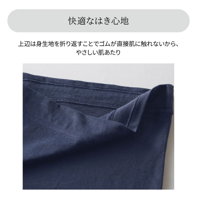 ・腹巻きの上辺は身生地を折り返しにし、ゴムが直接肌に触れない仕様