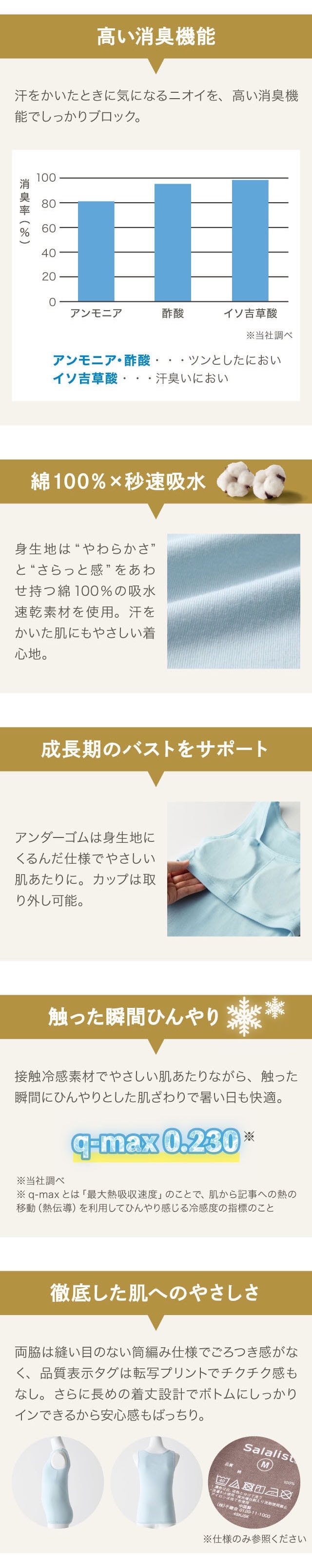 ・綿100%ながら、q-max0.24以上の接触冷感機能付きで着た瞬間ひんやり冷たい※