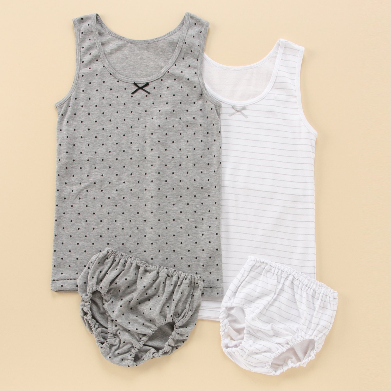 ●素材-タンクトップ(ボーダー):綿100%、タンクトップ(ドット):ポリエステル65%、綿35%、ショーツ(ボーダー):綿100%、ショーツ(ドット):ポリエステル65%、綿35%