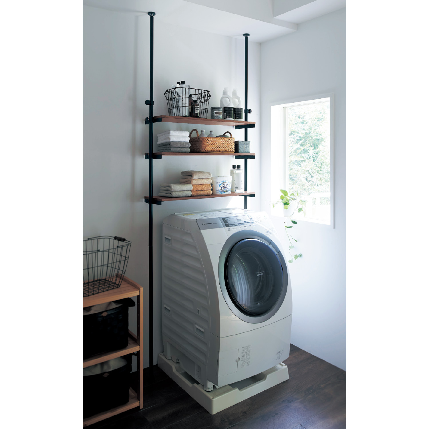 ●突っ張り式で安定して使えるランドリーラック