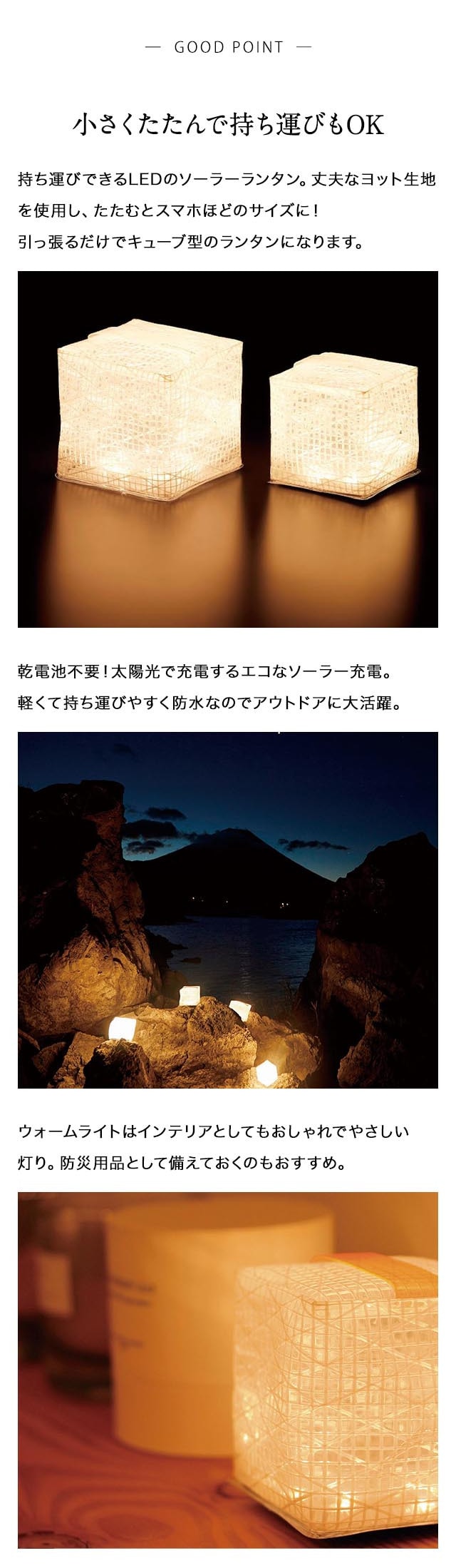 ●小さくたたんで持ち運びできるLEDのソーラーランタン