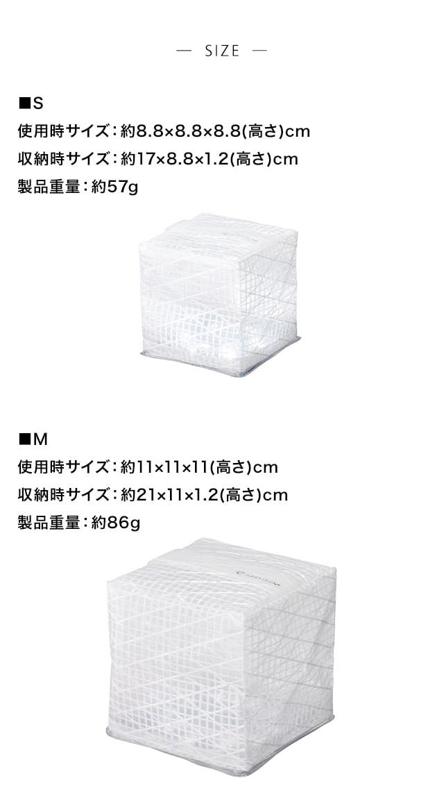 ■M/使用時サイズ:約11×11×11(高さ)cm、収納時サイズ:約21×11×1.2(高さ)cm、製品重量:約86g