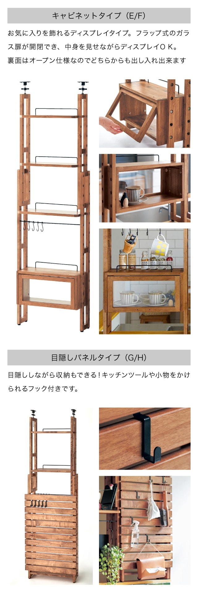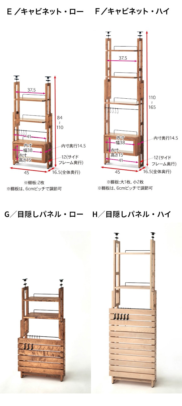 E/キャビネット・ロー 幅×奥行×高さ 45×16.5×84〜110cm、サイドフレーム奥行12cm