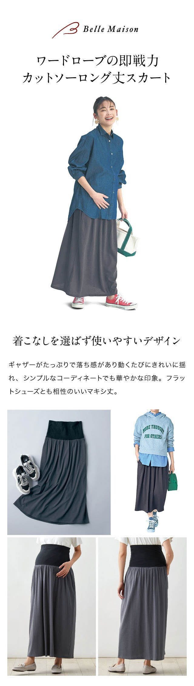カットソー素材でリラックスしてはけるフレアシルエットのスカート。