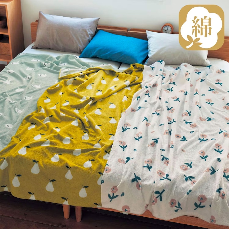 綿100%のタオルケットは、デザインも、使い心地も大満足。