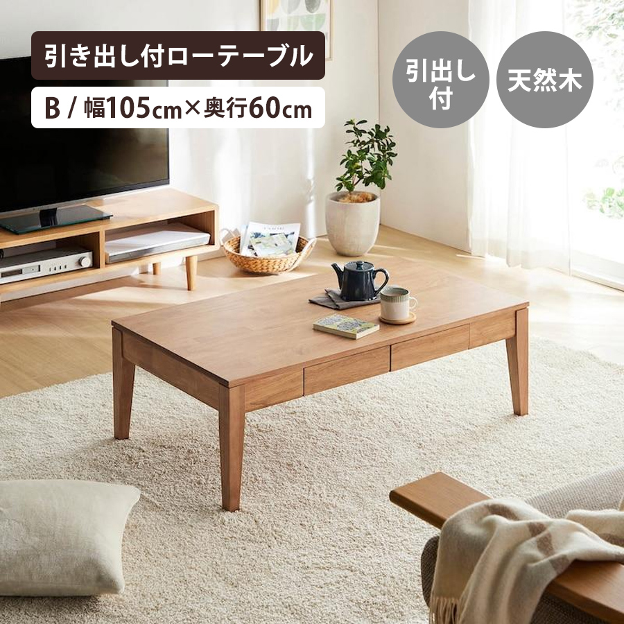●リモコンや文具、新聞など散らかりがちな小物を片付けるのに便利な引出し付きテーブル