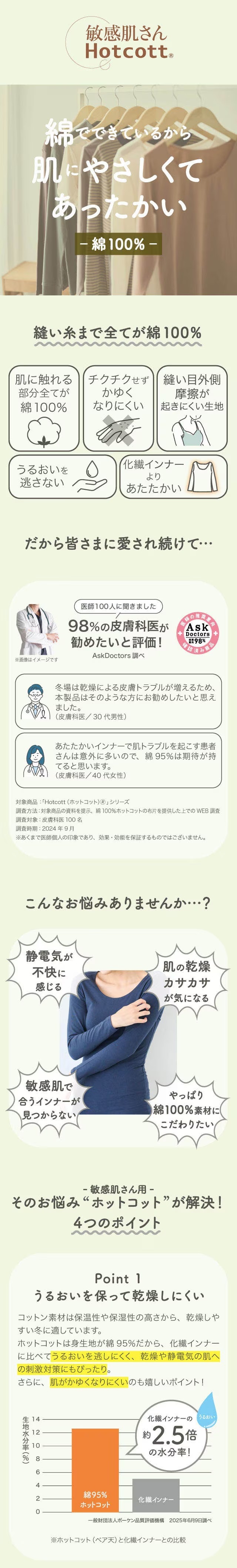 ・敏感肌さんにうれしい綿100%のホットコット