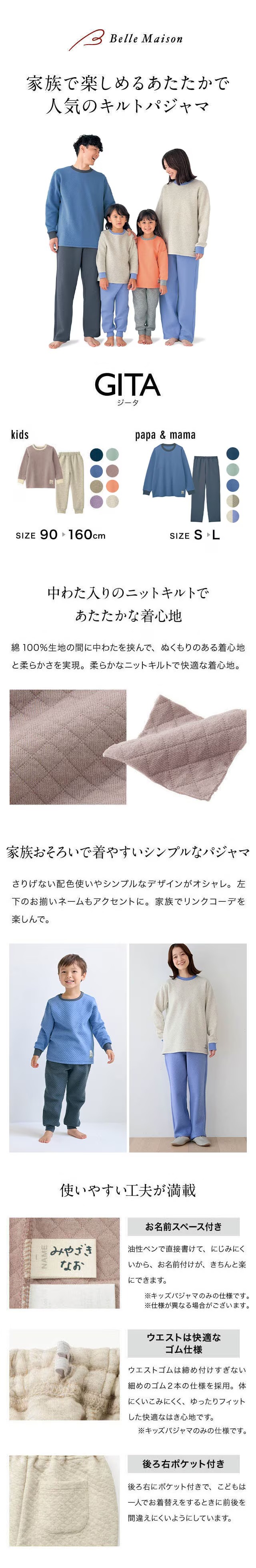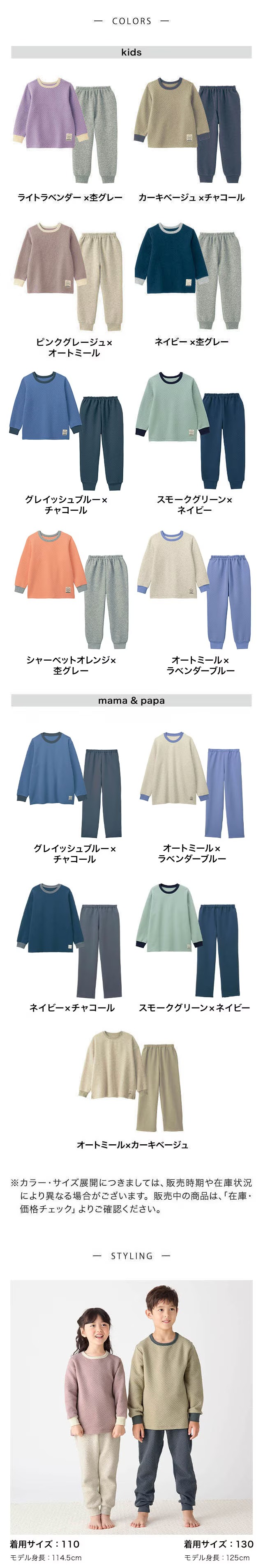 ●<カットソー>表側・裏側:綿100%、中わた:ポリエステル100%(ニットキルト)、リブ部分:<カットソー>綿95%、ポリウレタン5%(リブ)