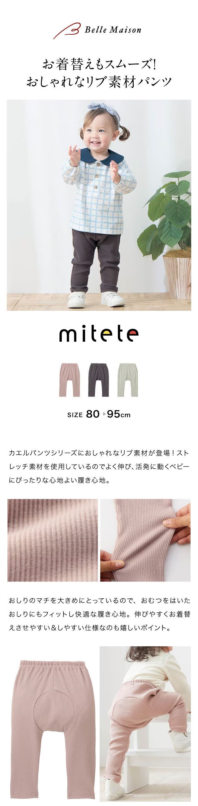 ・伸縮性のあるリブ素材でベビーの動きを妨げない