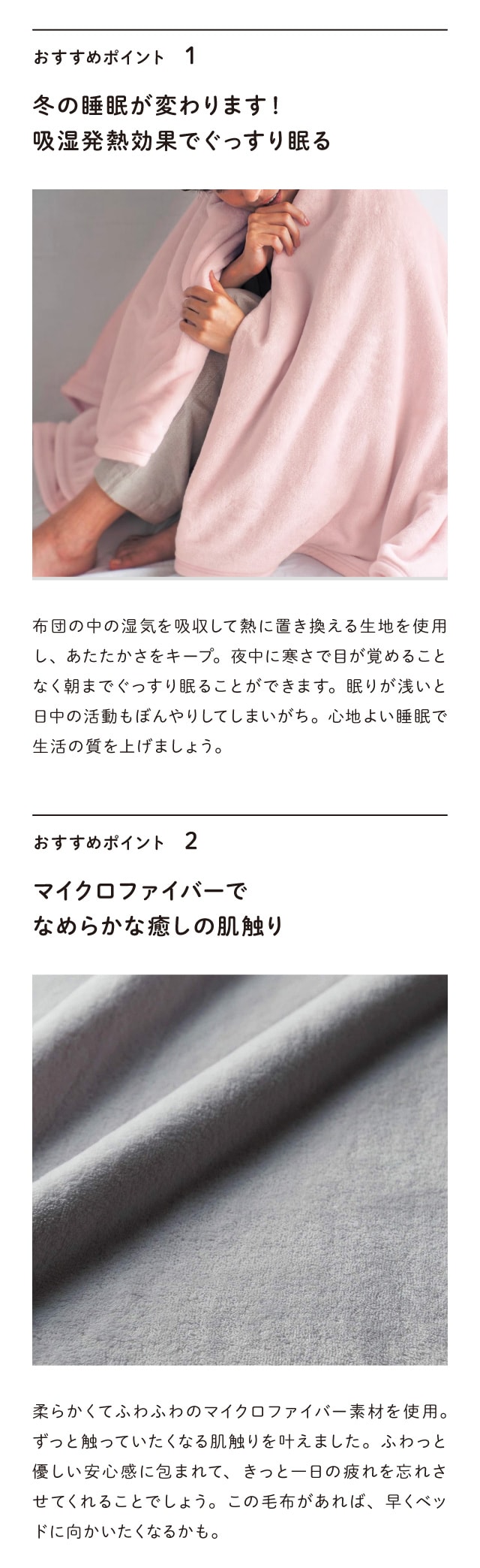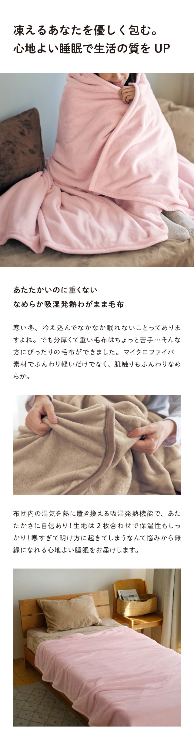 吸湿発熱機能&2枚合わせでさらにあたたかなマイクロファイバー毛布