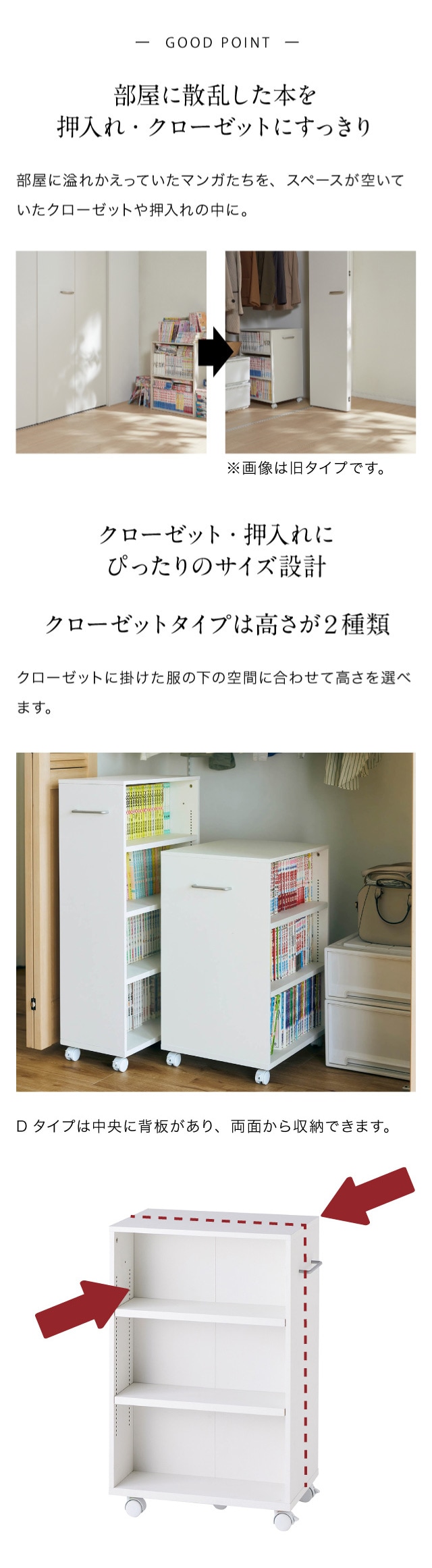 ●クローゼット用のハイタイプE・FはB6サイズのコミックも4段収納できるようになりました