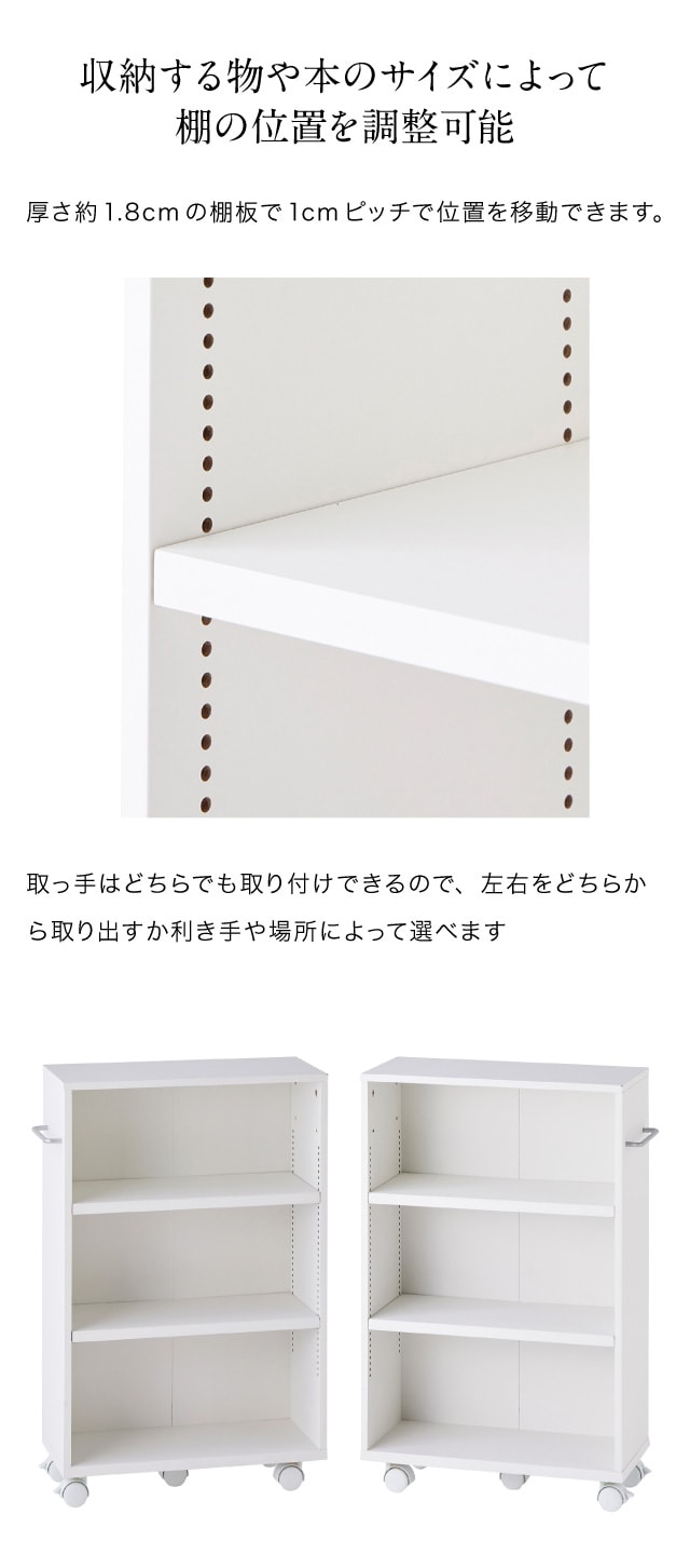 ●1cmピッチの可動式の棚板なので様々なサイズの本が収納できます