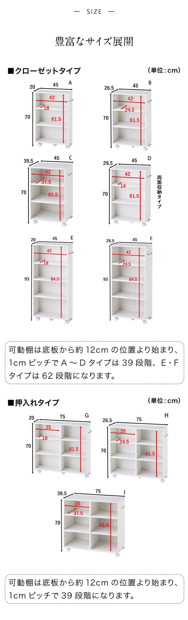 可動棚/A・B・C・D・E・F:2枚、G・H・I:4枚