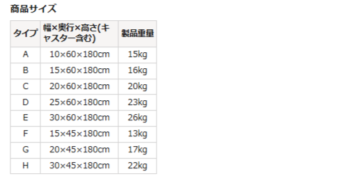 固定式可動棚:5kg、可動棚:3kg