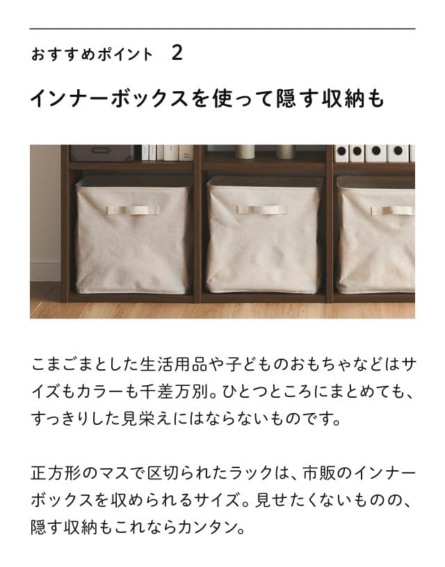 ●市販のインナーボックスが収まるサイズなので、隠す収納がしやすくなりました