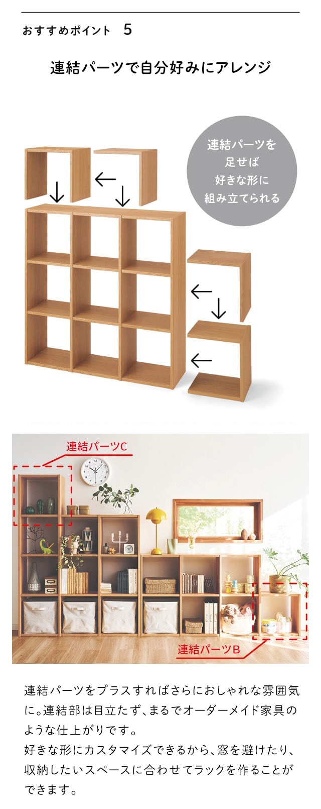 ●別売の「連結できるラック用連結用パーツ」を組み合わせて好きな形に作れます