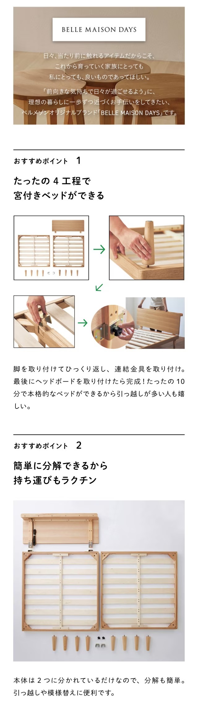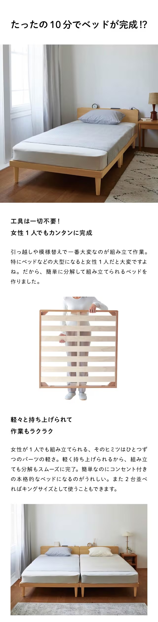 工具不要、わずか10分で宮付きベッドが完成