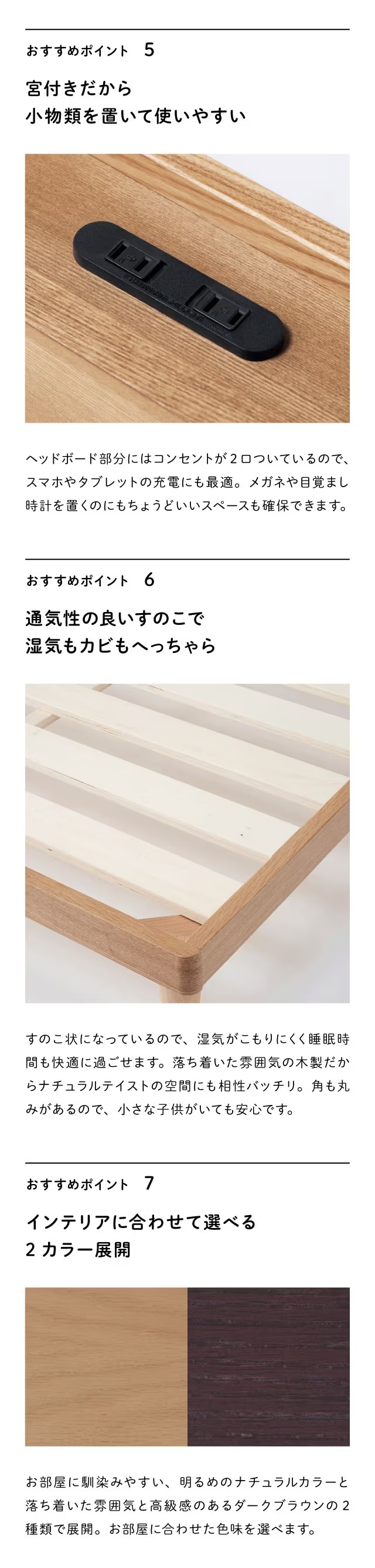 ●主材/ヘッドボード・フレーム:天然木化粧繊維板(タモ材<ウレタン樹脂塗装>)、脚部:天然木(樺材<ウレタン樹脂塗装>)、すのこ:天然木化粧合板(ポプラ材<無塗装>)