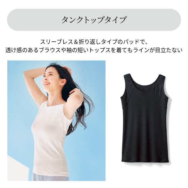 脇汗・汗ジミ・汗のベタベタやニオイなど、汗のお悩みを解消し、快適に過ごせるよう開発した、ベルメゾンオリジナルの汗取りインナーシリーズです。