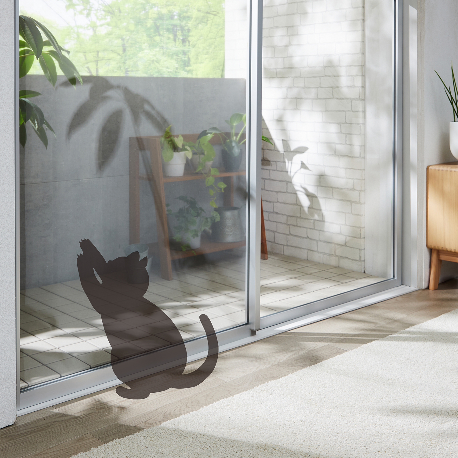 ●網戸のペット爪対策に●細かい目でペットの爪が引っかかりにくくなる●細かいメッシュで小さな虫もブロック●今ある網戸の上から取り付けるだけ●付属の面ファスナーで簡単取り付け●無地と猫柄の2種類