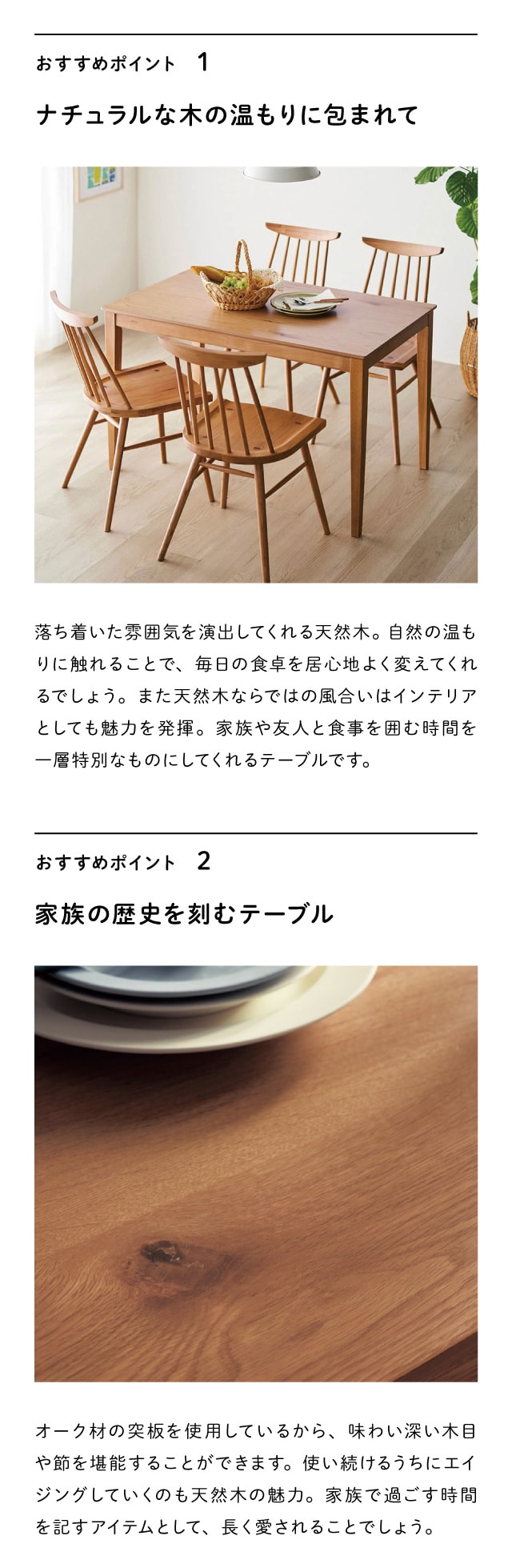●オーク材の突板を使用し、味わい深い木目や節を堪能できるダイニングテーブルです