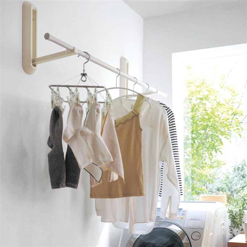洗面所などの狭い場所にも取り付けられる、「壁付け物干し」のショートタイプが登場!