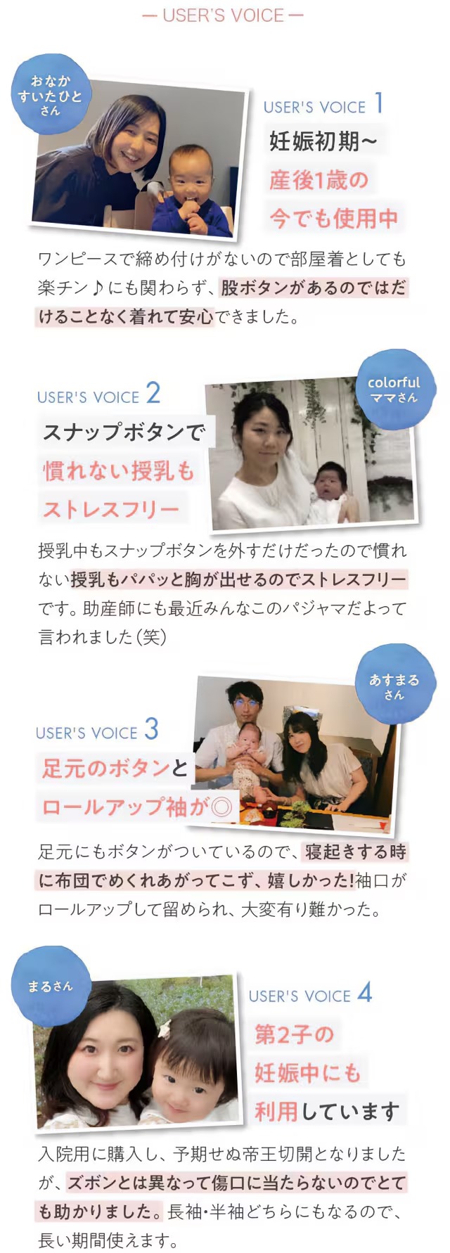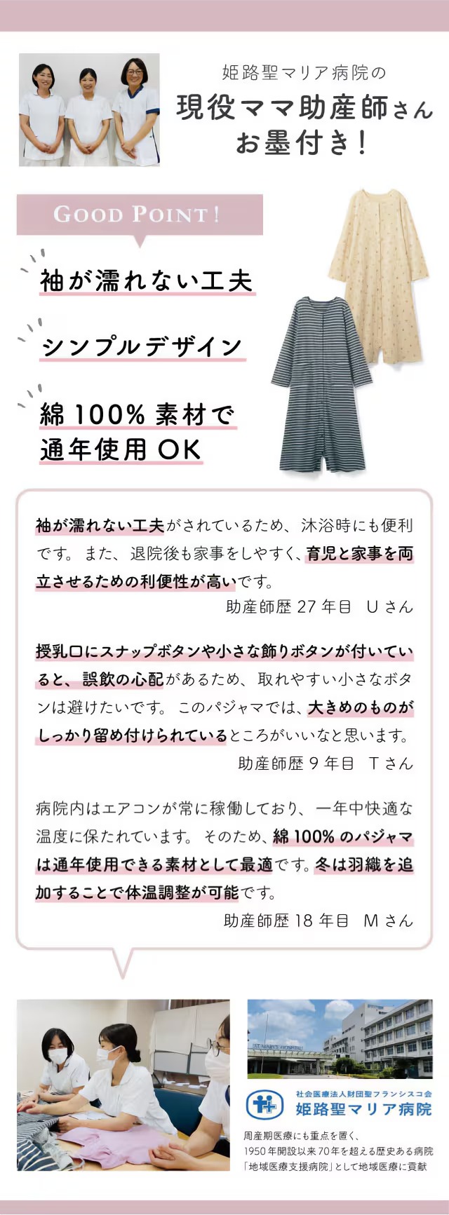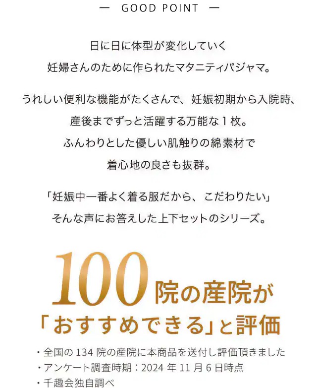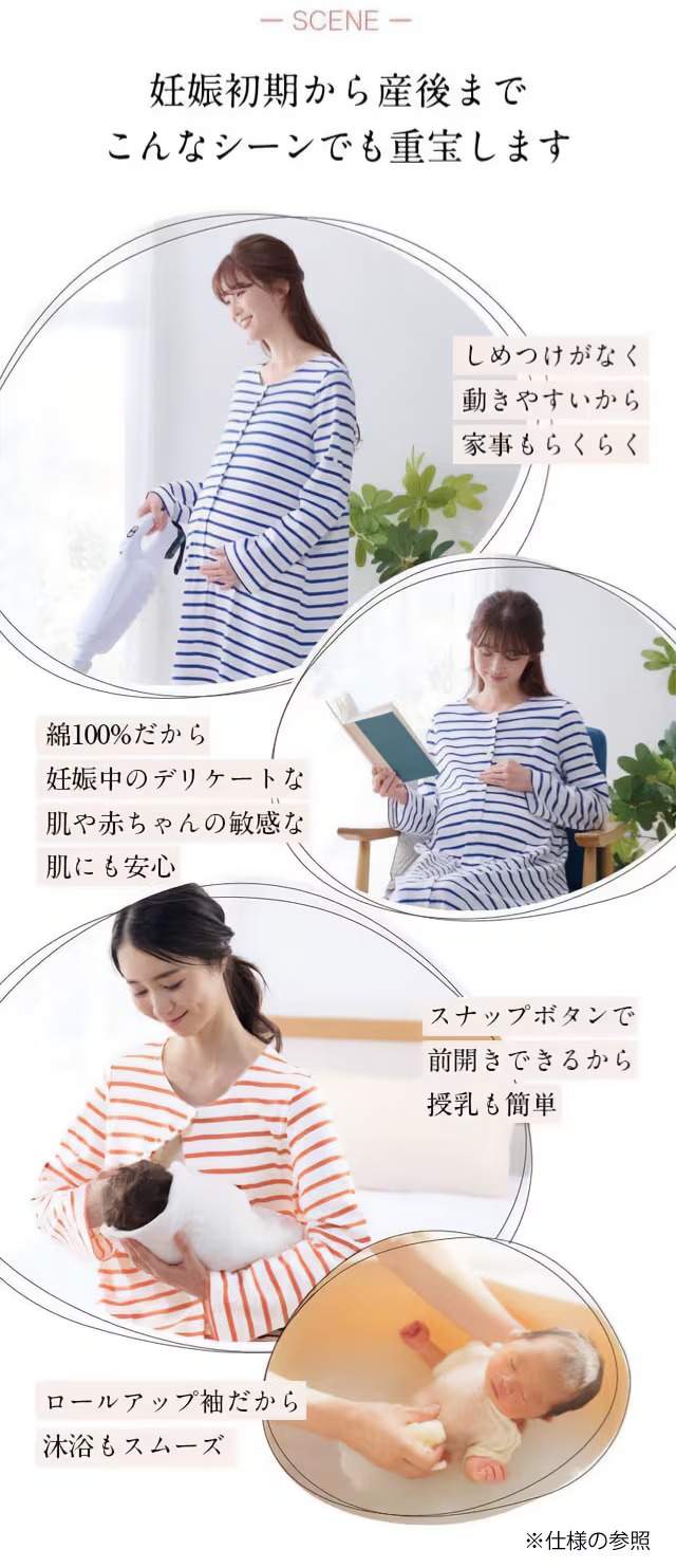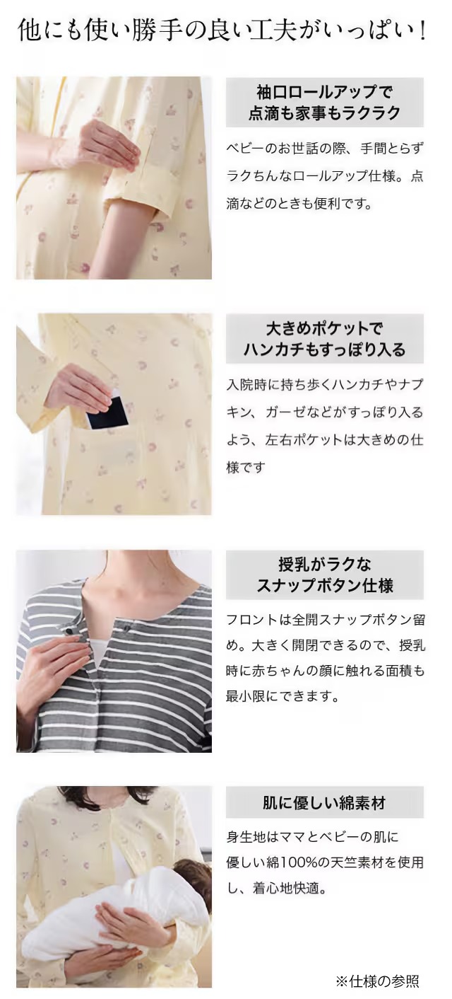 ・スナップボタンで前開きできるから着脱&授乳しやすく、帝王切開でも安心