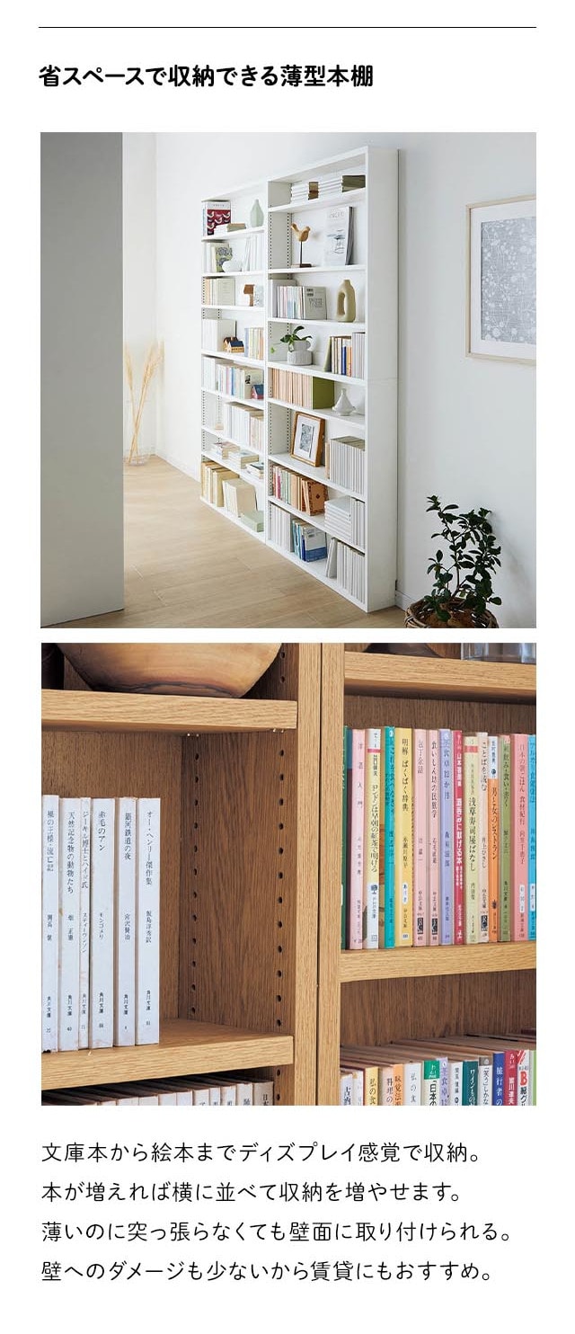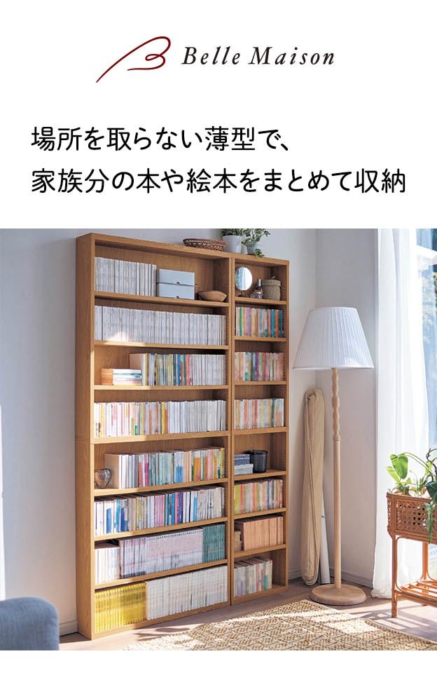 場所を取らない薄型で、家族分の本や絵本をまとめて収納