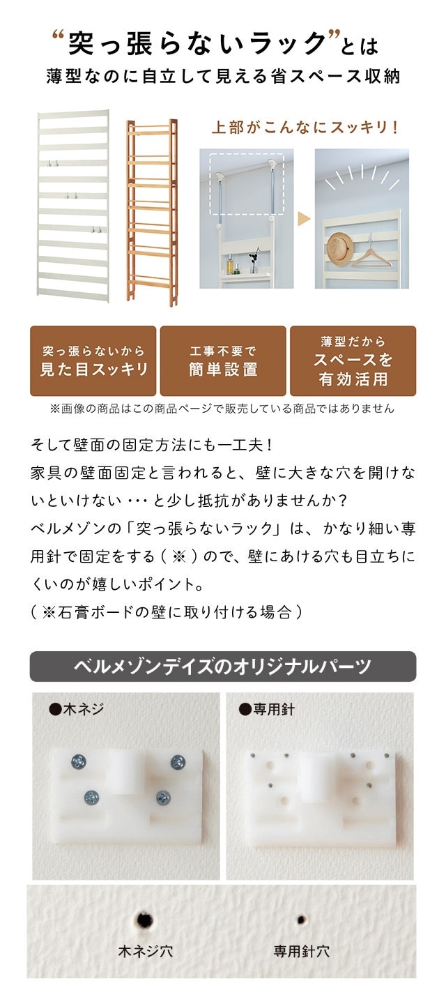●薄いのに突っ張らなくても壁面に取り付けられる