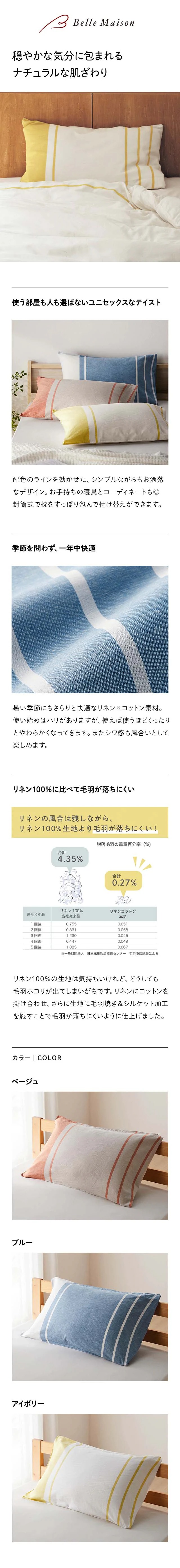 ●生地に毛羽焼き・シルケット加工を施しており、またリネンと綿を掛け合わせることで、リネン100%生地と比べると、毛羽が落ちにくくなっています