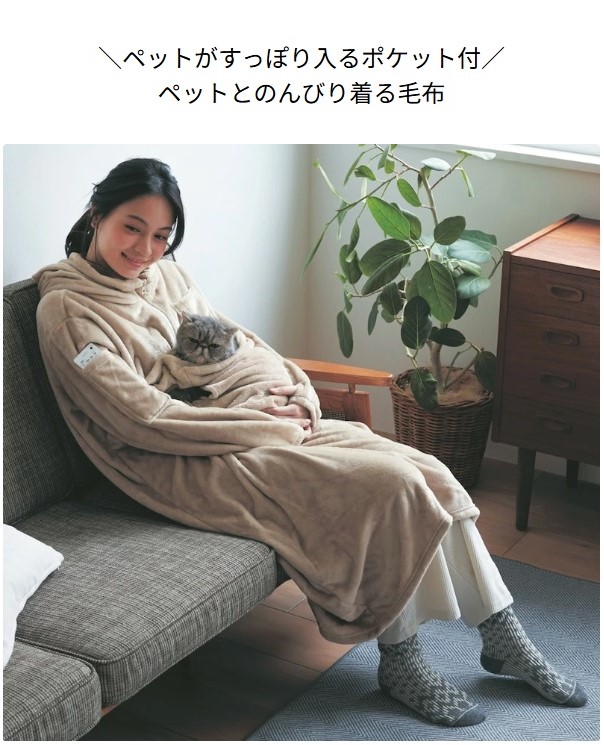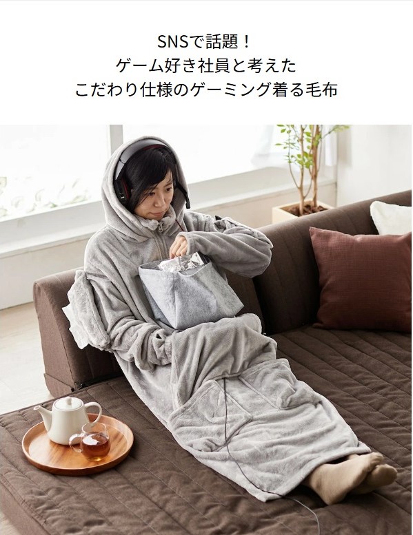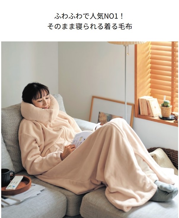 ・表面はマイクロファイバー、裏面は摩擦の少ないさらっとした素材を採用し、着るだけで毛布を羽織った時のように暖かく快適に過ごせる