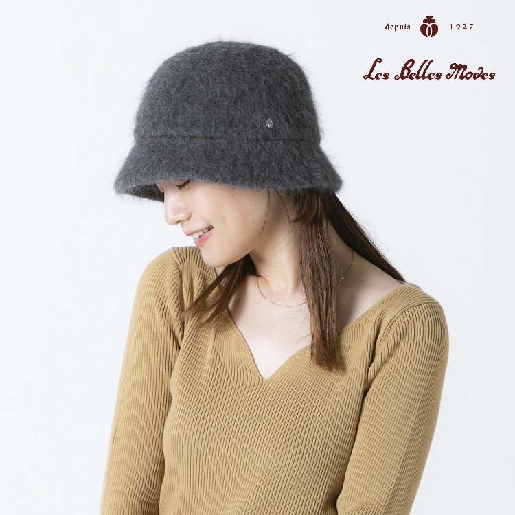 ●やわらかなアンゴラ糸を使用した、大人の女性におすすめしたいバケットハット。ふわふわの毛足を品良く仕上げており、冬の装いを華やかに演出します。